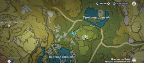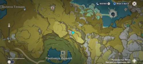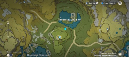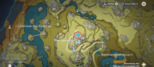 Гора камней расположена в северо-западной части долины, недалеко от лагеря хиличурлов.