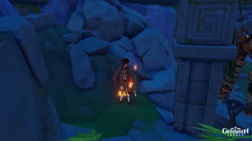От Статуи Архонтов спуститесь на юго-запад и разрушьте деревянный столб. Будьте осторожны: рядом появится хиличурл с факелом.