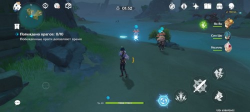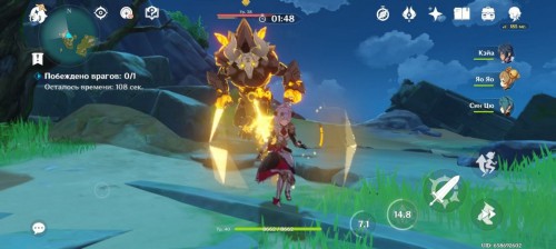 После взаимодействия со следующей плитой победите 10 монстров за 2 минуты. Вам предстоит сразиться с хиличурлами, митачурлом с каменным щитом и Крио слаймами.