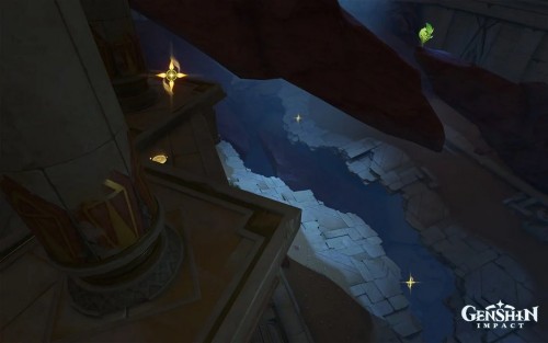 Переместитесь к подземной точке телепортации в районе Кусайр аль-Инхида. Идите в туннель, показанный на скриншоте. Дойдя до тупика, поднимитесь по четырехлистным символам. От огромной дыры в полу еще немного поднимитесь к колоннам. Там же находится дендрокул, если вы не собрали его ранее.