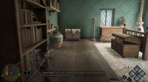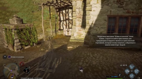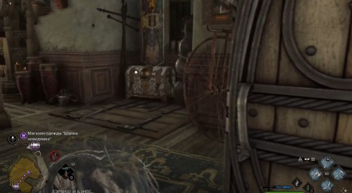 Переместившись, поверните налево и пройдите по каменному мосту на другую сторону. На развилке поверните налево и поднимитесь наверх по ступенькам. Двигайтесь вперед к магазину «Тимофиллы и поганки» и войдите внутрь. Затем сразу же используйте невидимость и идите в левую часть заведения, где вы и найдете сундучок.