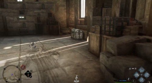 Чтобы незаметно подойти к подобному сундуку, необходимо для начала использовать дезиллюминационное заклинание, которое может делать волшебника невидимым. Применив чары, начните медленно приближаться к нужному объекту в стелс-режиме, пока не появится кнопка для его открытия – сразу же нажмите на нее и заберите содержимое. На гифке ниже показан весь процесс.