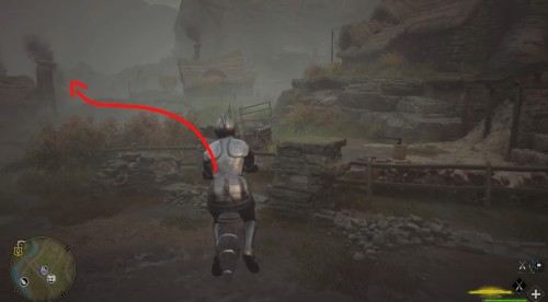 Телепортировавшись в отмеченную деревушку, бегите к дому с левой стороны. Позади него будет изгородь, которую нужно уничтожить огнем. За ней вы обнаружите искомый объект.