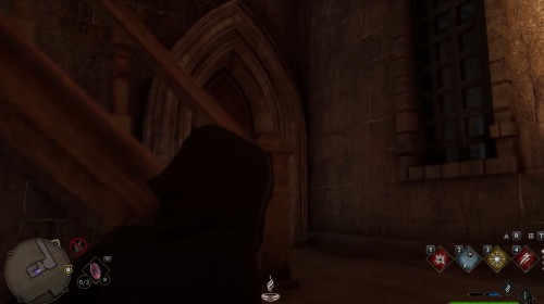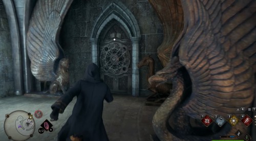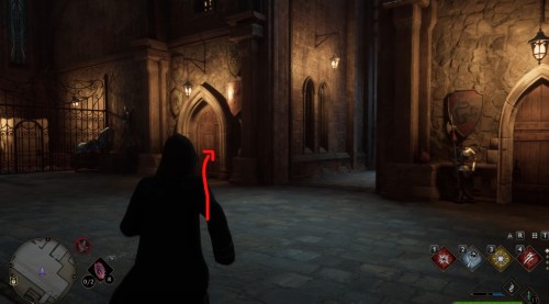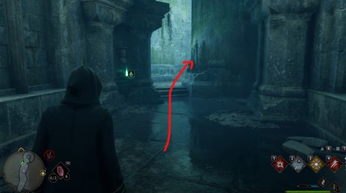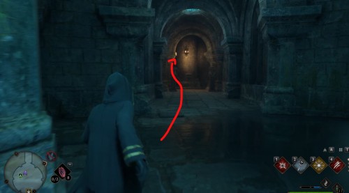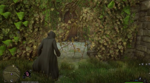 Вам необходимо будет пройти через потайной коридор травологии. Если вы уже выполнили побочный квест «Ядовитая отвага», то помните, что он находится рядом с теплицами. В ином случае просто посмотрите на скриншоты ниже – проход будет спрятан за лианами, которые необходимо будет сжечь огненным заклинанием (например, Инсендио).