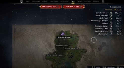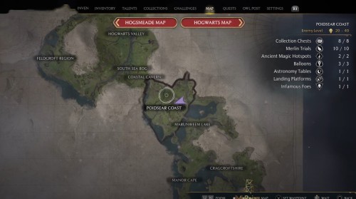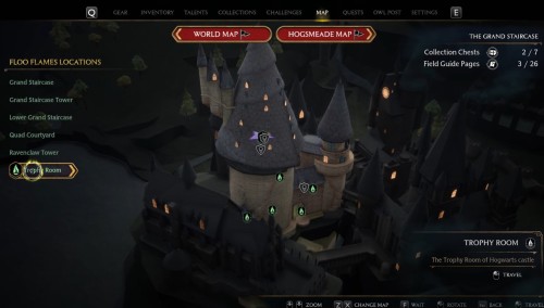Они спрятаны не только в Хогвартсе, но и его окрестностях. Нередко они находятся за закрытыми дверями, поэтому следует для начала открыть и прокачать Алохомору. Вам могут потребоваться и другие виды заклинаний – мы обязательно укажем это в статье. Советуем также держать перед глазами интерактивную карту мира, чтобы лучше ориентироваться на местности.