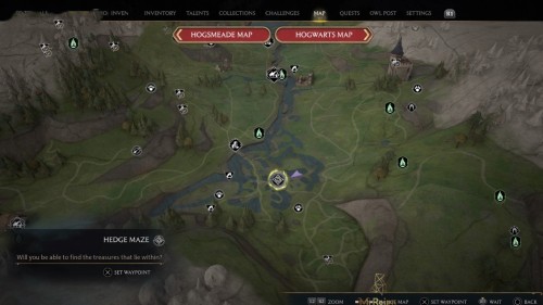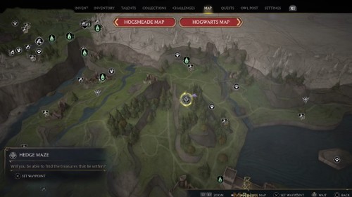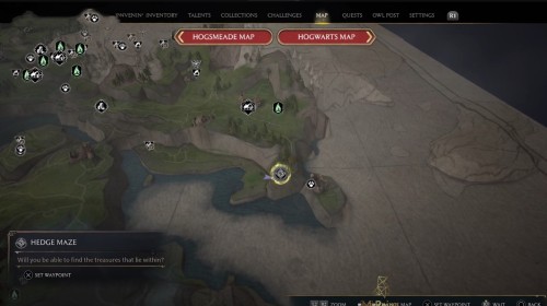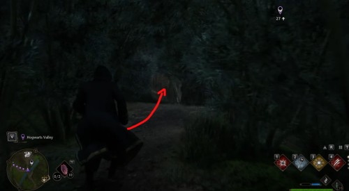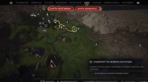 Направляйтесь в отмеченную область, чтобы отыскать необычный лабиринт. Здесь вы обнаружите огромную арку из растений. Пройдите через нее для старта испытания. Активируйте Ревелио, и вы увидите расположение необходимого объекта. Это заклинание также поможет вам найти выход из живых изгородей.