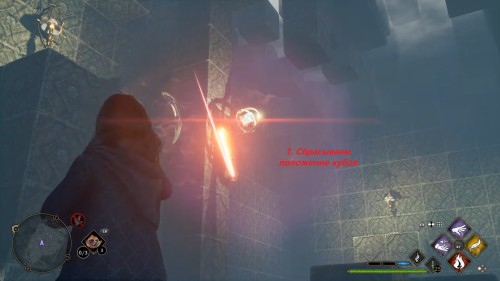 - Выстрел заклинанием в светящуюся сферу сбрасывает положение кубов на исходное;