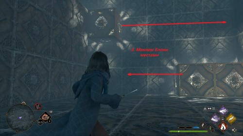 - Заклинания «Депульсо» и «Акцио» воздействуют на грань куба, в которую направлены, соответственно притягивая или отталкивая куб к следующему препятствию;