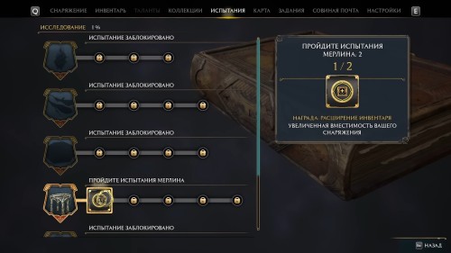 Важно: ни одно из испытаний Мерлина нельзя пропустить. Вы полностью свободны выбирать, как и когда их проходить. Отслеживать прогресс можно на счетчике в правой части карты.