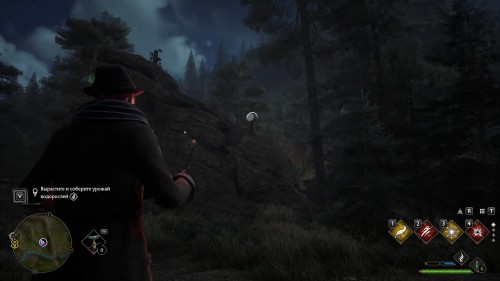 Одна из отметок пера прямо на границе между лесом и болотами, можно начать с нее, а уже затем углубиться в чащу и добить две оставшиеся точки в этой области.