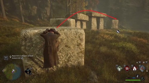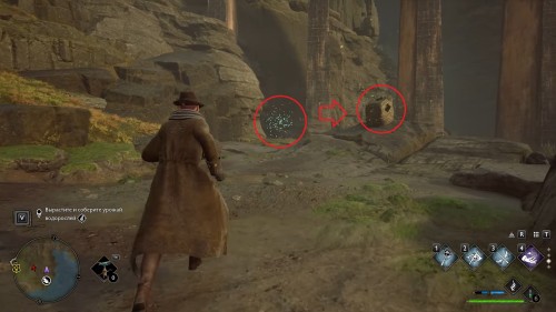 Необходимо найти платформу с углублениями – в нее нужно собрать горкой пять шаров, спрятанных неподалеку. Перекатить их можно с помощью чар «Акцио», а перенести через препятствия заклинанием «Левиосо». Обнаружить камни на пересеченной местности поможет заклинание «Ревелио», особенно если использовать летающее средство передвижения и осмотреть окрестности с высоты.