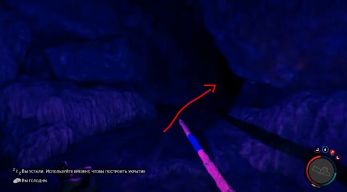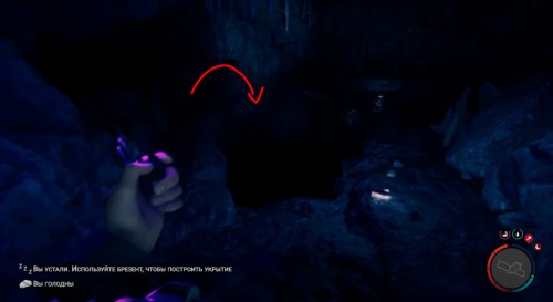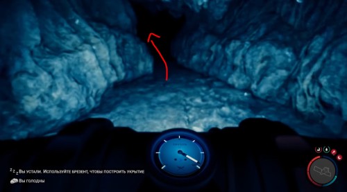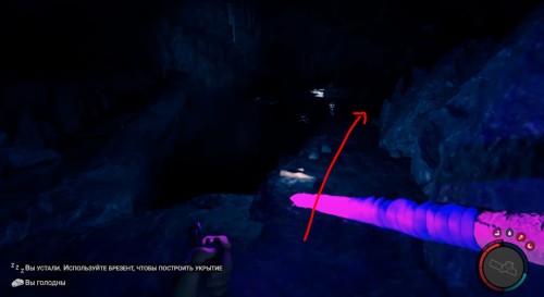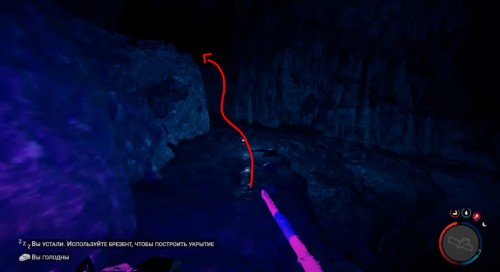Идите вперед по узкому лазу. Когда снова окажитесь в просторной области, держитесь возле правой стены. Через 15-20 секунд вы увидите новый проход впереди. Войдите в него и двигайтесь дальше по узкому тоннелю. Вам, скорее всего, придется пригнуться.