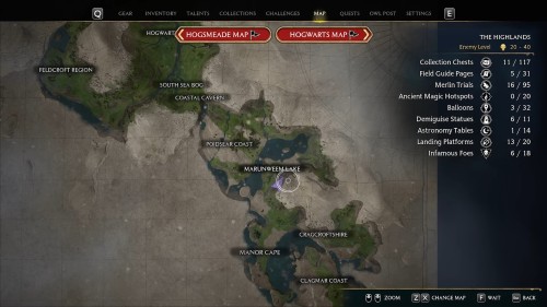 Примечание: разгадку шахматных загадок можно отнести к достаточно поздним игровым активностям, так как для прохождения требуется высокий уровень отпирающих чар, а также наличие заклинаний «Вингардиум левиоса» и «Трансформация». Проверьте, что «Алохомора» возвышена до уровня 3, а указанная выше магия уже доступна. Если нет, не расстраивайтесь, а просто двигайтесь дальше по сюжету, пока нужные перки не будут открыты. Подробная информация по всей магии в игре в нашем материале: все заклинания в Hogwarts Legacy.