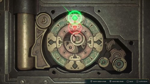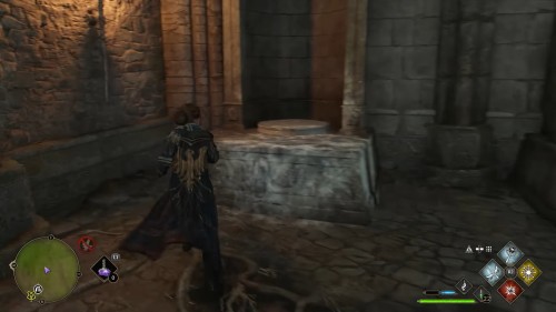 Воздействуйте на маховик чарами «Депульсо» – это приведет в движение платформу, которая необходима для преодоления препятствия в этом помещении. Когда устройство потеряет восприимчивость к магии, платформа достигнет конечной точки своего пути, и вы сможете по ней перебраться к сундуку.