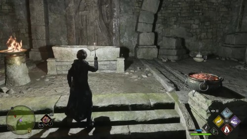 Когда помещение хранилища похоже на крипту и вокруг разбросаны кости и останки, их необходимо собрать на тотемах с помощью «Акцио» и «Левиосо», тогда тем или иным образом появится доступ к сундуку с наградой.