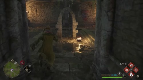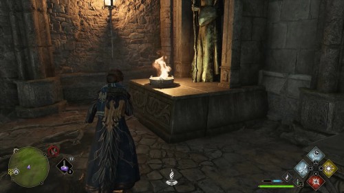 Часть таких жаровен не горит. Исправьте это с помощью чар «Инсендио» или «Конфринго», и путь к награде будет открыт.