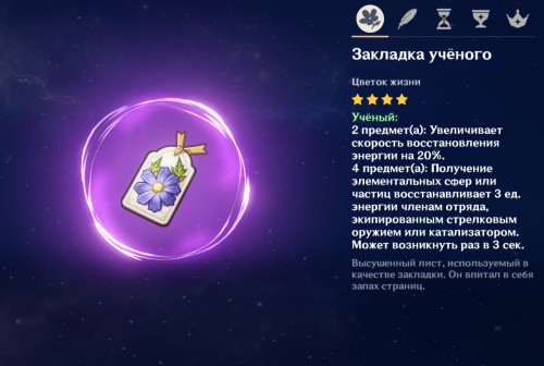 Наборы артефактов. 2 части комплектов Изгнанник, Ученый (качество: 3 и 4 звезды) и Эмблема рассеченной судьбы (качество: 4 и 5 звезд, можно получить в подземелье «Кленовый зал») дают бонус 20% восстановления энергии.