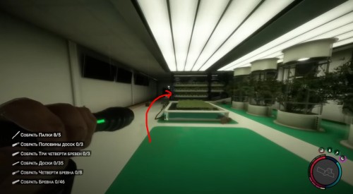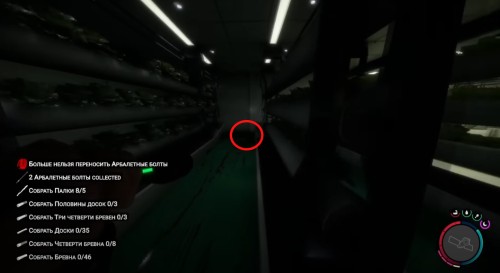 Двигайтесь дальше в первый зал с гидропоникой. Здесь на вас нападут мутанты-младенцы. Можете не обращать на них внимания, а просто пробежать вперед во вторую зону озеленения. Идите вперед и примерно в конце помещения сверните вправо и в углу вы сможете обнаружить арбалет. Не забудьте подобрать болты на стене.