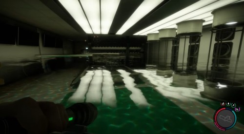 В третьем зале на вас нападет опасный мутант, поэтому будьте осторожны. Советуем вам использовать против него ранее подобранное оружие. Далее спуститесь вниз по лестнице, чтобы попасть в полузатопленные помещения. Проплывите через несколько комнат вперед и заплывите в открытый проход. Вы окажитесь в коридоре, где необходимо свернуть в первую дверь слева.