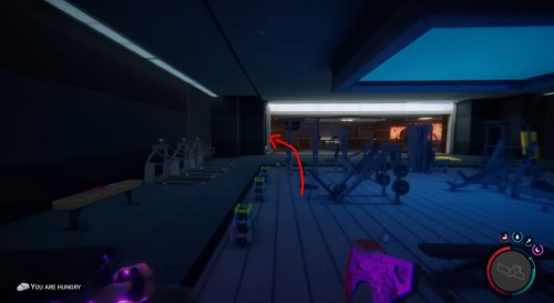 Идите через тренажерный зал, держась левой стороны, а потом пройдите налево в комнату с оранжевыми панелями. Здесь будет много монстров, поэтому либо обходите их (многие мутанты слепые, но хорошо слышат, так что двигайтесь медленно), либо старайтесь выманивать врагов по одному.