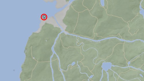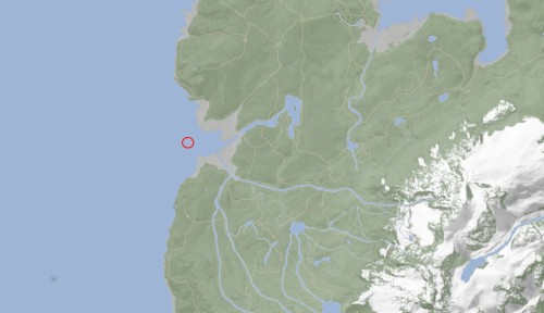 Отыскать его можно практически в самом начале игры, так как он находится неподалеку от побережья в западной части острова. На скриншотах ниже показано необходимое вам место. Дойдя до указанного берега, вы увидите впереди красную надувную лодку. Кстати, в вашем GPS-навигаторе она будет отмечена фиолетовым восклицательным знаком.