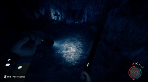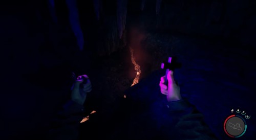 Пройдя внутрь, начните двигаться вниз по единственному туннелю. Затем вы окажитесь на выступе с двумя веревками. Соберите канаты и спуститесь по небольшой дорожке в просторную подземную область. Идите вперед, держась правой стены.