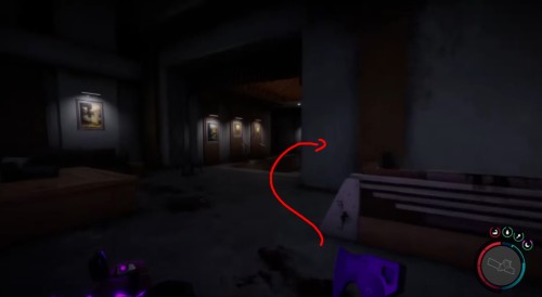 Пройдите через следующую комнату и открытую желтую дверь, а на развилке сверните влево и идите по белому коридору вперед. Возле стола ресепшена сверните влево в галерею, а потом войдите в правый проход. Пройдите через коридор, и вы попадете в VIP-зону. Поверните налево и пройдите мимо большого экрана. В этой новой комнате на подставке можно отыскать крест.