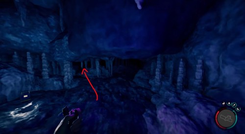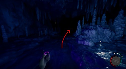 Начните идти вперед по единственному пути. В определенный момент вам нужно будет пригнуться, чтобы пройти дальше. В результате вы окажитесь в более просторной области. Продолжайте двигаться вперед, держась левой стороны. Пройдите мимо сталагмитов в следующий туннель.