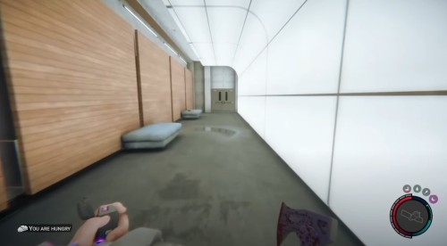Идите через тренажерный зал, держась левой стороны, а потом пройдите налево в комнату с оранжевыми панелями. Здесь будет много монстров, поэтому либо обходите их (многие мутанты слепые, но хорошо слышат, так что двигайтесь медленно), либо старайтесь выманивать врагов по одному. Затем сверните направо и осмотрите стеллажи в уголке, чтобы отыскать пижаму.