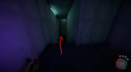 Спустившись, идите вперед через инопланетный коридор, а потом поверните в правый туннель. Плывите по воде, нырните и через 15-20 секунду всплывите и доберитесь до подсвеченного участка. Снова погрузитесь в воду и, когда доплывете до тупика, сверните влево.