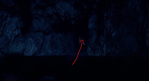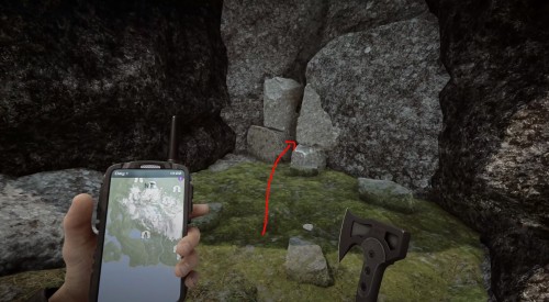 Отправляйтесь в область, показанную на скриншотах выше, и доберитесь до небольшой каменистой местности, находящейся рядом с озером. На ее западной стороне у подножья вы обнаружите щель, ведущую в пещеру – заберитесь в нее.