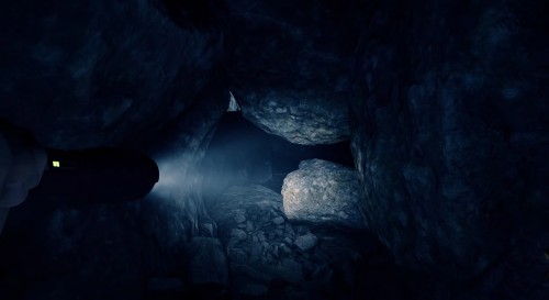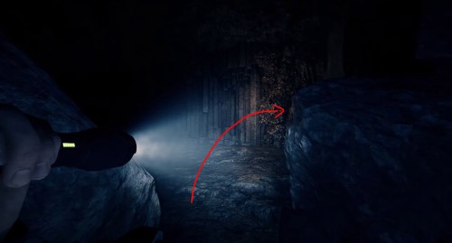 Пройдя внутрь, сверните в левый туннель и бегите вперед, поднявшись наверх по узкому лазу. Оказавшись на выступе, спрыгните вниз в просторную локацию. Подойдите к булыжникам на другом конце области и залезьте в очередную щель.
