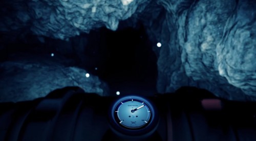 Снова попав в просторную пещеру, идите дальше, держась правой стороны (идите по выступу), к источнику света впереди. Затем поверните в тоннель направо, заполненный рудой. Дойдя до воды слева, погрузитесь в нее, надев ребризер.