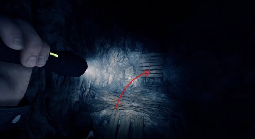 Идите вперед к подсвеченной области. Здесь будет веревка, по которой вы сможете подняться наверх. Поднявшись, идите по странному туннелю вперед до самого конца, никуда не сворачивая. Затем заберитесь по выступам с деревянными дощечками и разбейте доски впереди, чтобы раскрыть новый проход.