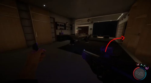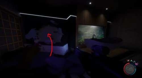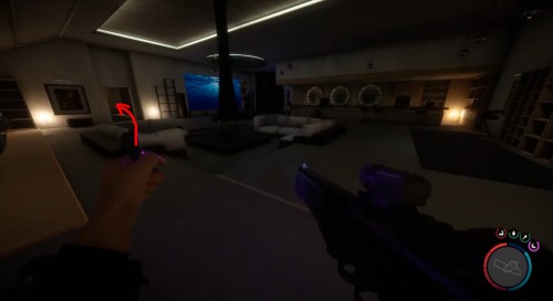 Выйдите из следующего помещения и на развилке поверните налево. Идите по коридору вперед, а возле стола ресепшена сверните влево в галерею, а потом войдите в правый проход. Пройдите через коридор, и вы попадете в VIP-зону. Поверните в левый проход рядом с огромным экраном. Попав в новую комнату, поверните направо и пройдите через открытую дверь в ванную.