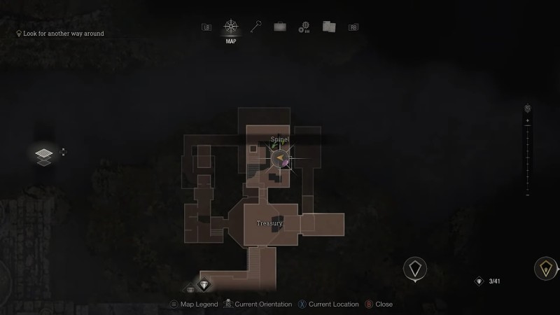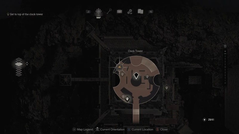 В этой главе смотритель спрятан почти в самом начале локации. Как только проберетесь во внутренний двор сквозь лабиринт из живой изгороди, оцените свое положение на карте. Цель находится под северо-западной лестницей.