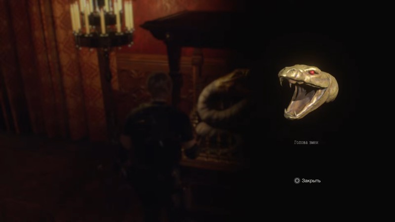 Когда стулья будут заняты, можно немного порадоваться за Леона, которому достались вино и булочка, но стоит вам позвонить в звонок, как откроется защитная решетка на статуе, а героям придется возвращаться к приключенческой рутине. Теперь можно забрать голову змеи и продолжить свой путь.