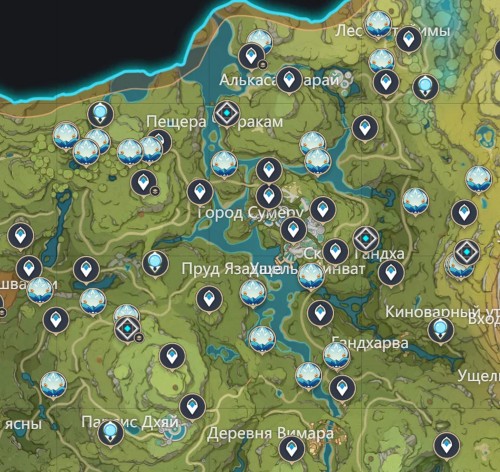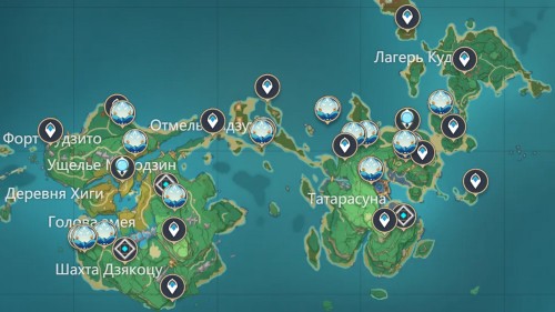 Ниже вы можете увидеть расположение всех попрыгуний на карте Тейвата.