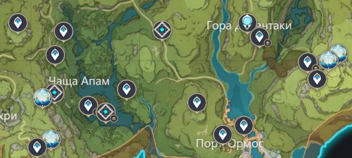 В указанных ниже точках вы сможете быстро найти более 30 попрыгуний. Если регулярно им пользоваться, то вы точно сможете прокачать всех ваших персонажей, которым требуется нектар для развития. Во время фарма оптимальнее всего добавить в команду героев пиро, гидро и крио стихий, чтобы против каждого вида использовать наиболее эффективный элемент. При необходимости, стоит включить в отряд щитовика.