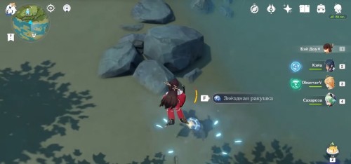 Далее переместитесь к статуе Архонтов в районе отмели Яогуан. Первая попрыгунья замаскировалась под цветок-сахарок. Чтобы появилась вторая необходимо подойти прямо к ракушке на пляже.