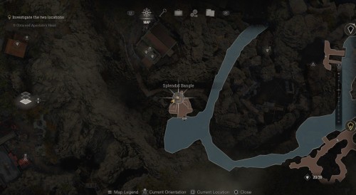 Двигайтесь в западную часть озера по водному каналу и слезьте с лодки на причале, показанном на скриншотах ниже. Поднимитесь на каменный выступ и откройте деревенское святилище, чтобы забрать роскошный браслет.