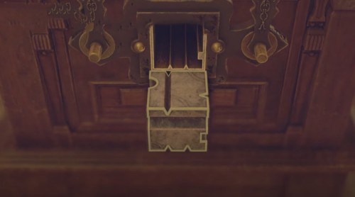 Сядьте в золотую вагонетку, пройдя через дверь в помещении с торговцем в Главном зале. Тем самым вы возвратитесь в Зал для аудиенций. Здесь отыщите золотую клетку, расположенную на северо-западе локации. Откройте ее с помощью кубического устройства, чтобы добыть статуэтку юстиции.