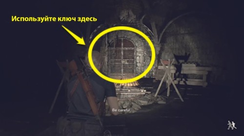 Проходите седьмую главу, пока не дойдете до камеры пыток в подземелье, расположенном под замком. Вскоре вы обнаружите кровавый след на полу и услышите странный металлический лязг. Двигайтесь по пятнам крови, пока не найдете труп в тупике – осмотрите его, чтобы найти нужный ключик.