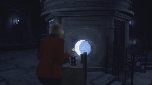 В конце девятой главы вы попадете в Усыпальницу, играя за Эшли. Там вам нужно будет правильно разместить лампы, чтобы открыть решетку и получить Фамильный герб Салазаров. Правильная комбинация показана ниже: