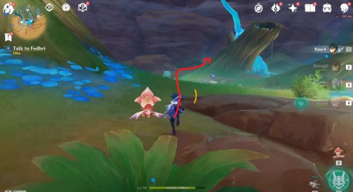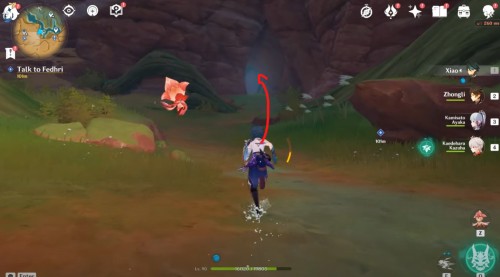 Бегите на запад и пройдите позади огромного пня. Там вы обнаружите вход в пещеру. Пройдите внутрь, и вы попадете в небольшую область с водоемом, рядом с которым находится пари по имени Федри. Поговорите с ней для завершения квеста и получения награды: 10 000 моры и 4 опыта искателя приключений.