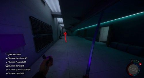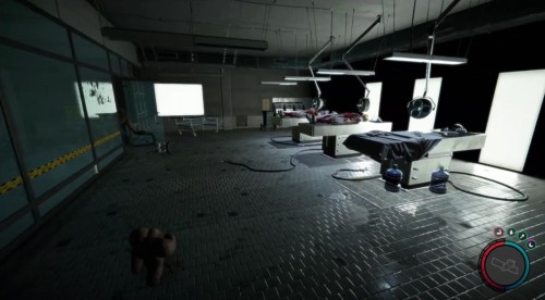 Двигайтесь вперед по длинному коридору. Дойдя до запертых двойных дверей, сверните в левый открытый проход. В результате вы попадете в морг. Идите в дальний правый угол помещения и на столе рядом с магнитофоном вы найдете экшн-камеру.