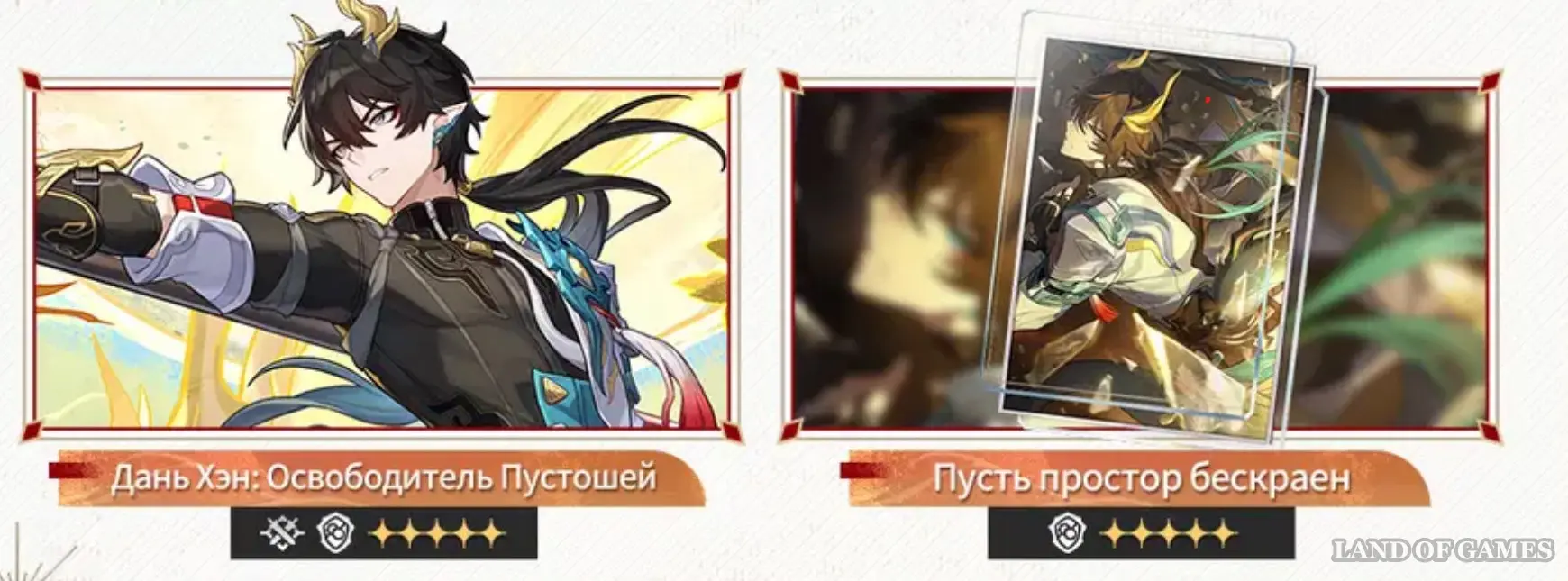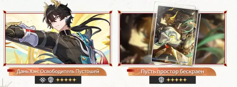 - 5-звездочные персонажи (повышенный шанс выпадения): Дань Хэн: Освободитель Пустошей (Сохранение: Физический)