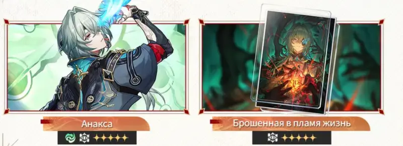 - 5-звездочные персонажи (повышенный шанс выпадения): Анакса (Эрудиция: Ветряной)
