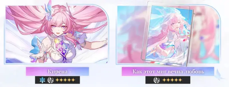- 5-звездочные персонажи (повышенный шанс выпадения): Кирена (Память: Ледяной)