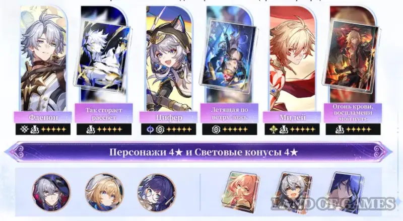 В рамках этого баннера повышена вероятность выпадения Фаенона (Разрушение: Физический), Цифер (Небытие: Квантовый) и Мидея (Разрушение: Мнимый). В отряде эти герои способны выполнять роли основного дамагера, второстепенного дамагера и основного дамагера соответственно.